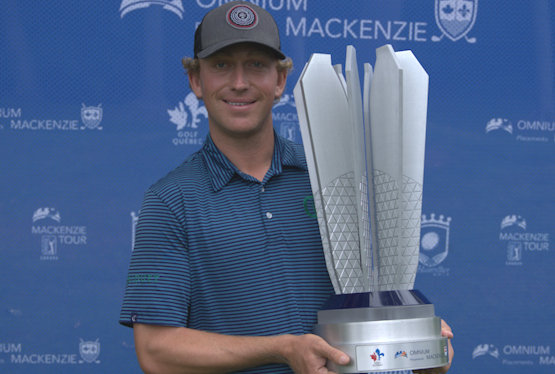 BLAINVILLE, Québec— Brendan Leonard a commencé la journée à égalité en troisième position, à cinq coups de la tête, mais le natif de Cambridge, en Ontario, a réalisé quelques oiselets décisifs ce dimanche pour remporter l'Omnium Placements Mackenzie, le premier tournoi du Mackenzie Tour 2021 - PGA TOUR Canada.