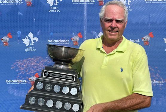 Après avoir entamé sa ronde avec un bogey, le Sherbrookois a bien rebondi en y allant de trois oiselets sur le 9 d’allée, dont un spectaculaire au huitième trou. Son coup de départ sur cette normale 3 de 162 verges s’est arrêté à quelques pieds de la coupe. Il n’a ensuite eu qu’à pousser la balle au fond du trou pour retrancher un autre coup à sa carte, en route vers la première conquête de sa carrière chez les séniors.