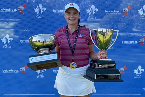 Le moins que l’on puisse dire, c’est que la golfeuse de 17 ans avait gardé le meilleur pour la fin. Après avoir signé des rondes de 74 (+3) lors de ses deux premières sorties cette semaine, elle est revenue en force lors de la troisième et dernière journée d’activités, où elle a ramené une carte de +1 (72). Le tout lui a ainsi permis de grimper jusqu’au sommet du classement toutes catégories confondues et, par le fait même, d’ajouter les titres amateur et junior de l’événement à sa récolte.
