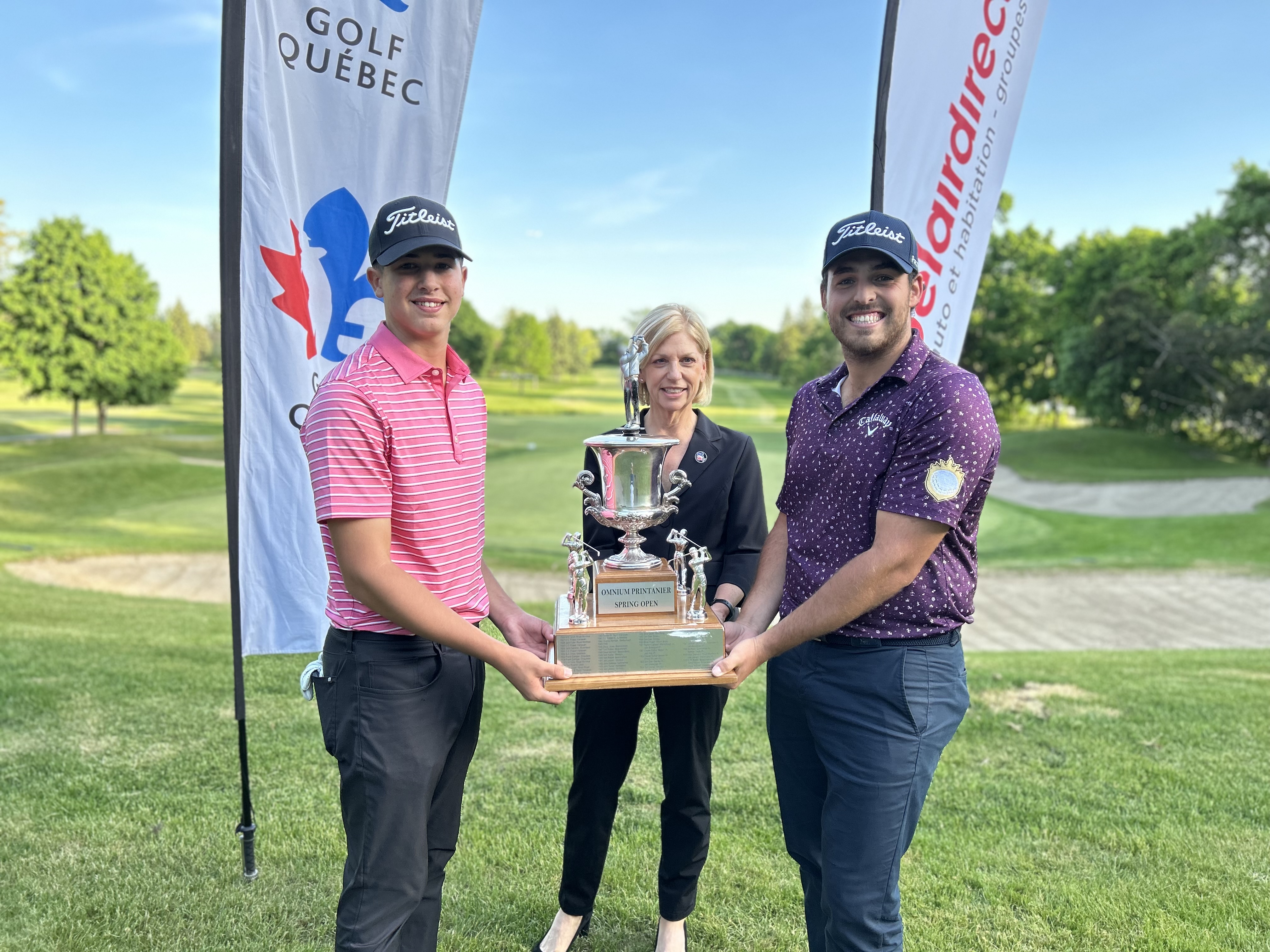 Montréal, 29 mai 2023 – La 95e édition de l’Omnium printanier a été haute en couleur lundi au Club de golf de Beaconsfield. La prolongation a été nécessaire pour départager Émile Lebrun (Club Laval-sur-le-Lac), Justin Grimard (Le Blainvillier/Équipe du Québec), tous les deux chez les amateurs et Étienne Brault (Club Laval-sur-le-Lac) chez les professionnels. Les trois golfeurs étaient à égalité à -5 (66) après les 18 trous réglementaires.
