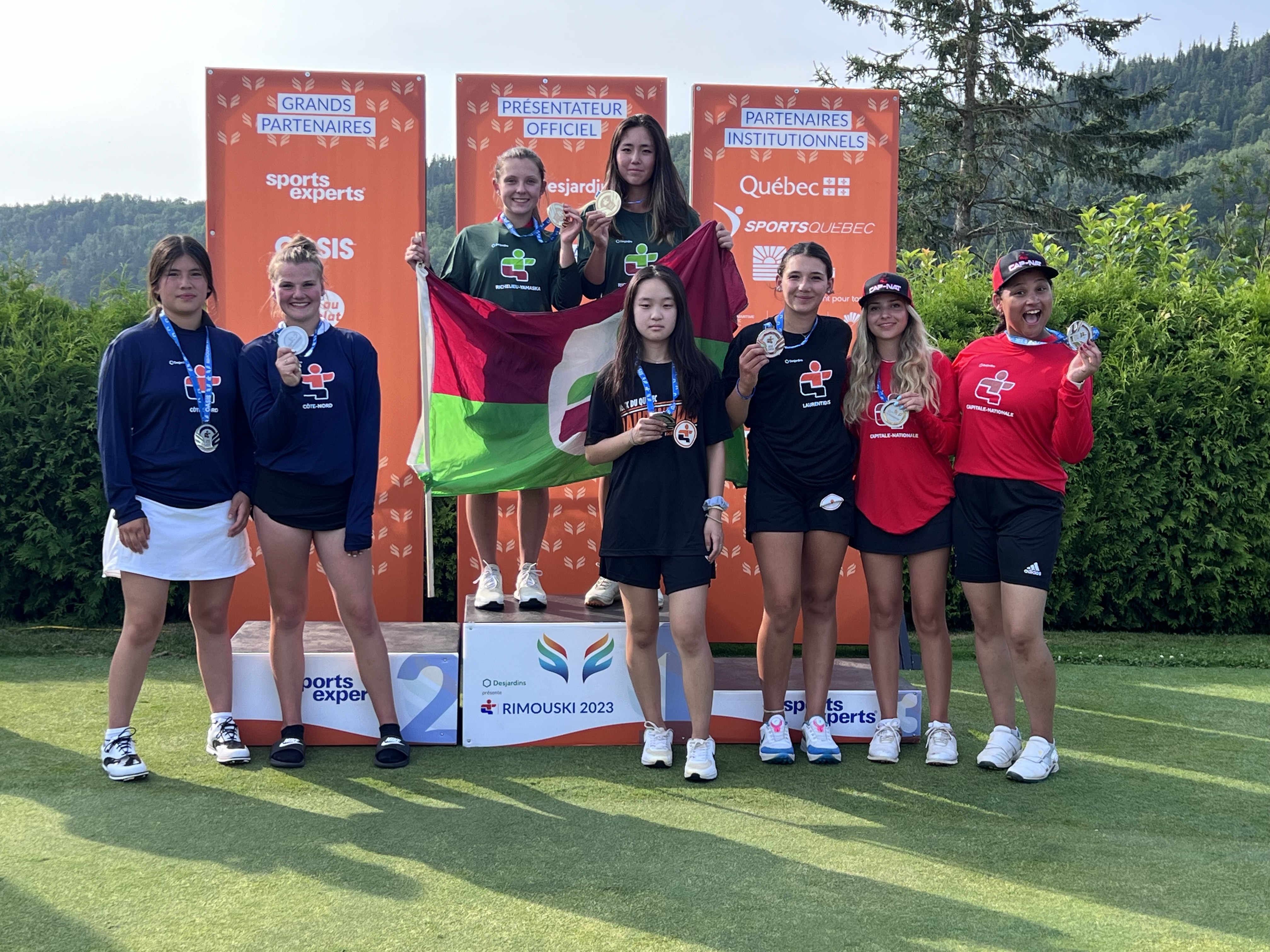 Rimouski, 26 juillet 2023 – Un trou de prolongation a été nécessaire pour départager les places du podium féminin 13-17 ans, mercredi, à la première journée d’activités de la 57e Finale des Jeux du Québec ! Ce sont finalement Kate Guo et Julia Riel, de Richelieu-Yamaska qui ont remporté la médaille d’or du format « deux balles, meilleure balle » au Club de golf Bic, à Rimouski