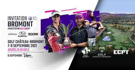 Ainsi, Golf Québec, le ECPT et le Golf Château-Bromont sont fiers d’annoncer que l’Invitation Bromont présentée par Subaru et Soonma en collaboration avec belairdirect se déroulera maintenant du 6 au 9 septembre 2021. Ce tournoi, unique en son genre au Canada, offre la possibilité aux femmes autant qu’aux hommes professionnels et amateurs de soulever le précieux trophée. L’événement rassemblera 156 golfeurs qui tenteront de décrocher leur part de la bourse globale de 60 000 $ s’ils sont professionnels.